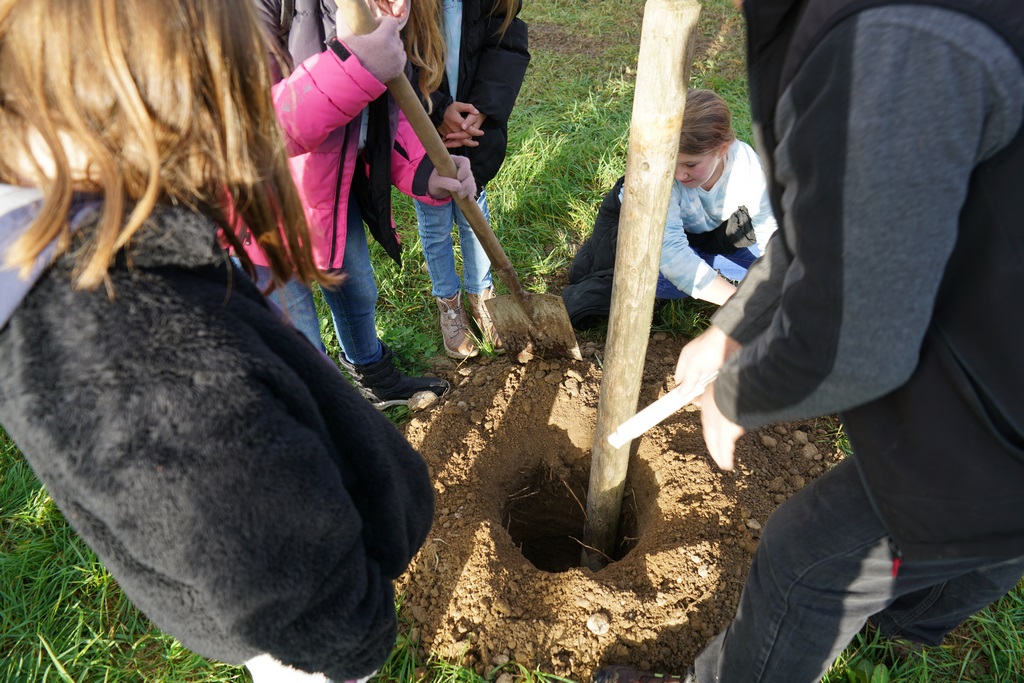 Matthias Roscher ist überzeugt: "Man kann nur schützen, was man kennt." Kennenlernen, begreifen und in diesem Fall auch mal selbst Erde in die Hand zu nehmen - das gehörte bei der Umweltaktion dazu. Und das taten die insgesamt 40 Jungen und Mädchen an diesem sonnigen Novembervormittag fern ihres Klassenzimmers. Luca, Mak und Samuele waren in einer Gruppe und zeigten stolz einen Strauch, den sie zusammen gepflanzt hatten.