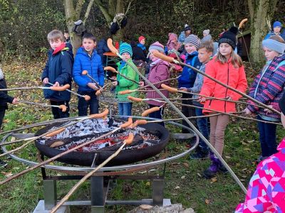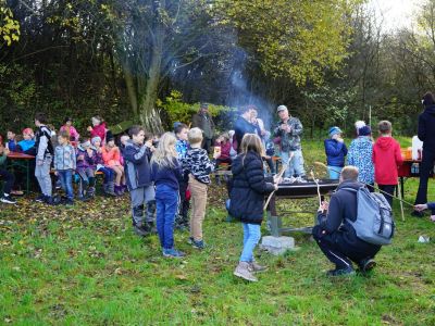 Die vor fünf Jahren gepflanzten Bäumchen sind inzwischen gewachsen und kräftiger geworden. "Erst in der nächsten Generation werden die Bäume groß sein", sagte er. Dann werden beispielsweise deren Eicheln und Bucheckern das hier vorkommende Wild versorgen. "Denn für die nächsten Generationen wird das Biotopgelände gestaltet", erklärte er weiter. Dabei würde er sich wünschen, dass den Kindern ihr eigener Einsatz zur Gestaltung des Biotops in Erinnerung bleibt. Dieser fand nach der erfolgreichen Pflanzaktion in Kettershausen einen gemeinsamen Abschluss am Lagerfeuer mit Würstchen und Punsch.